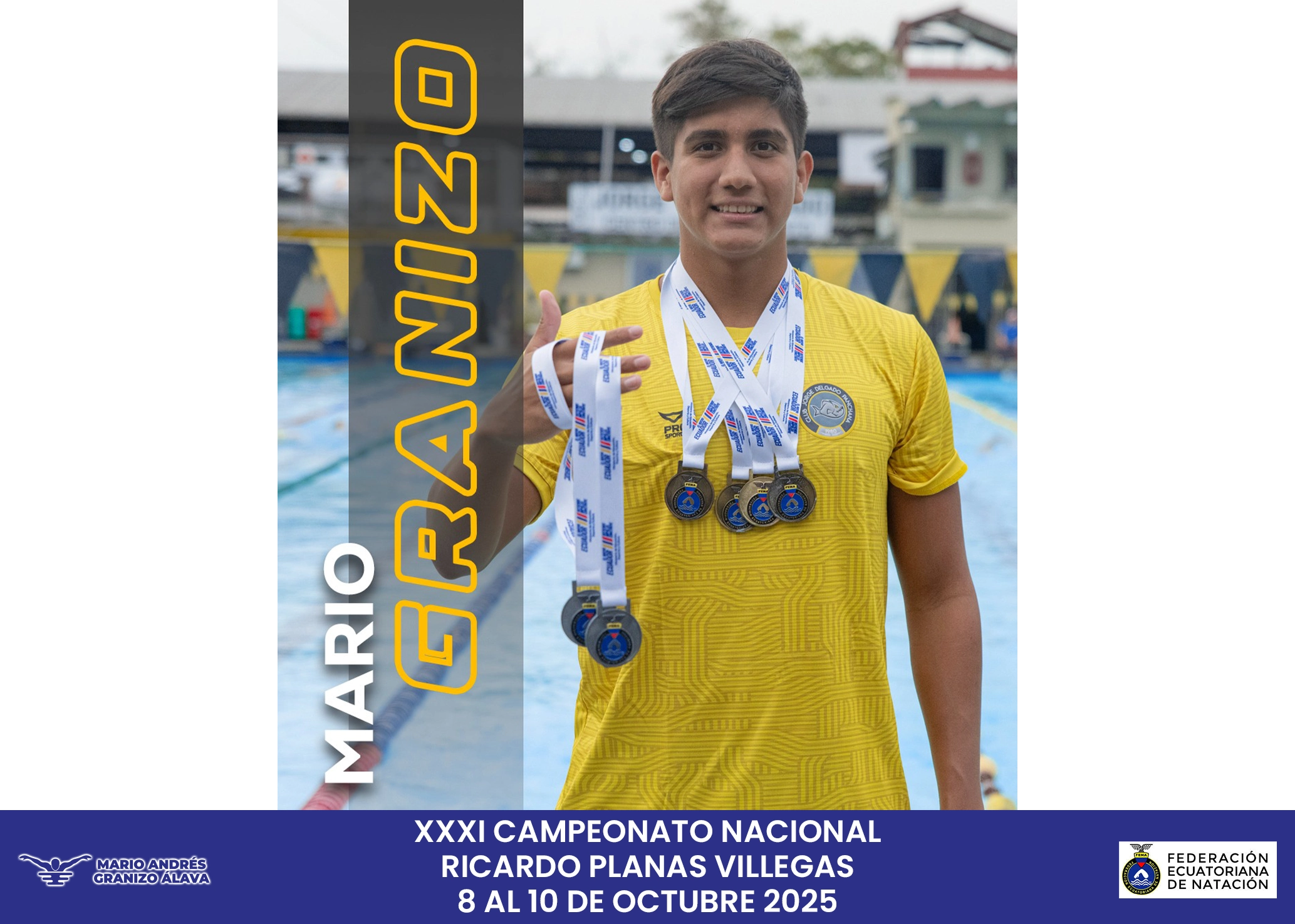 Mario Andrés Granizo ganó tres títulos nacionales y logró la mejor marca técnica en 800 metros libres con 8’35″43.