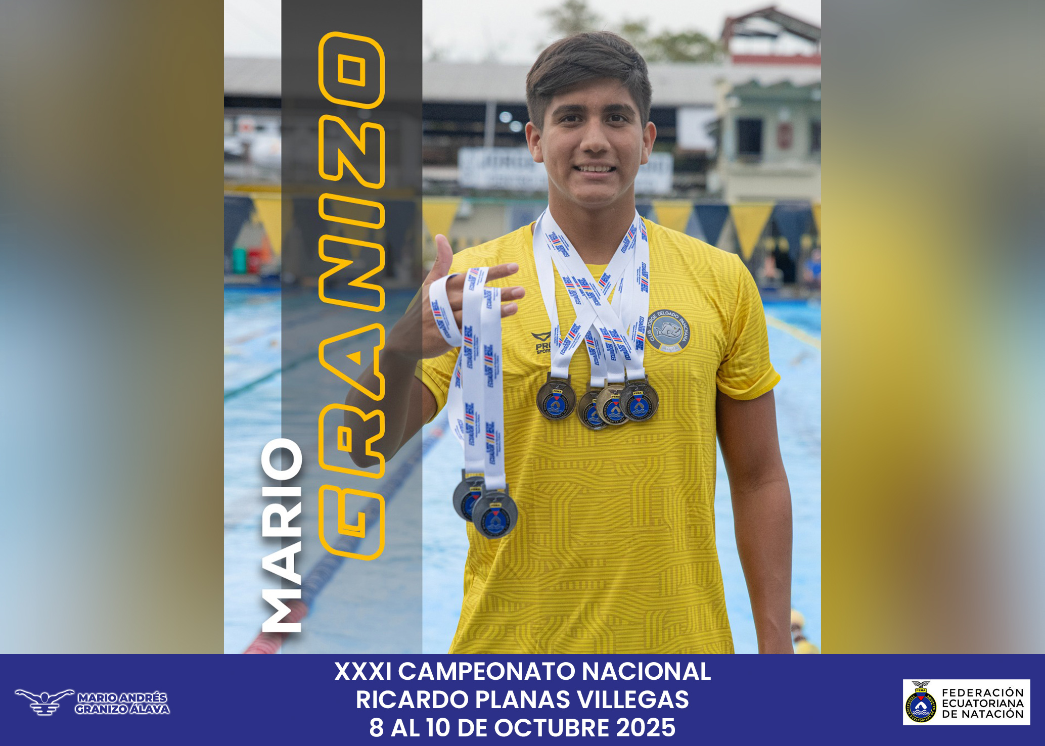Mario Andrés Granizo, el Tiburón del Guayas, conquista 5 medallas en el Nacional de Natación «Abel Gilbert».